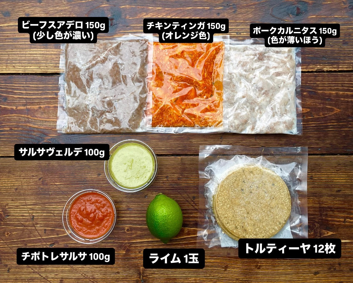 キタデ定番のお肉とサルサが入った、タコス12個分のお得なセットを
